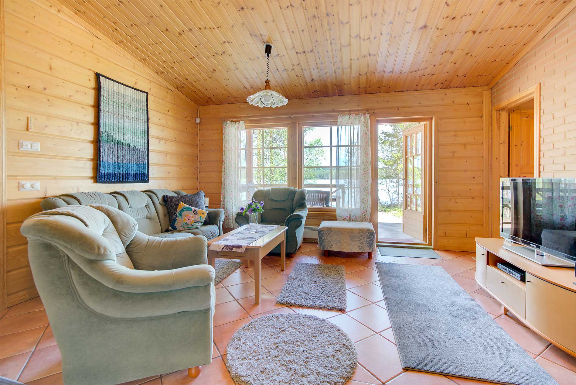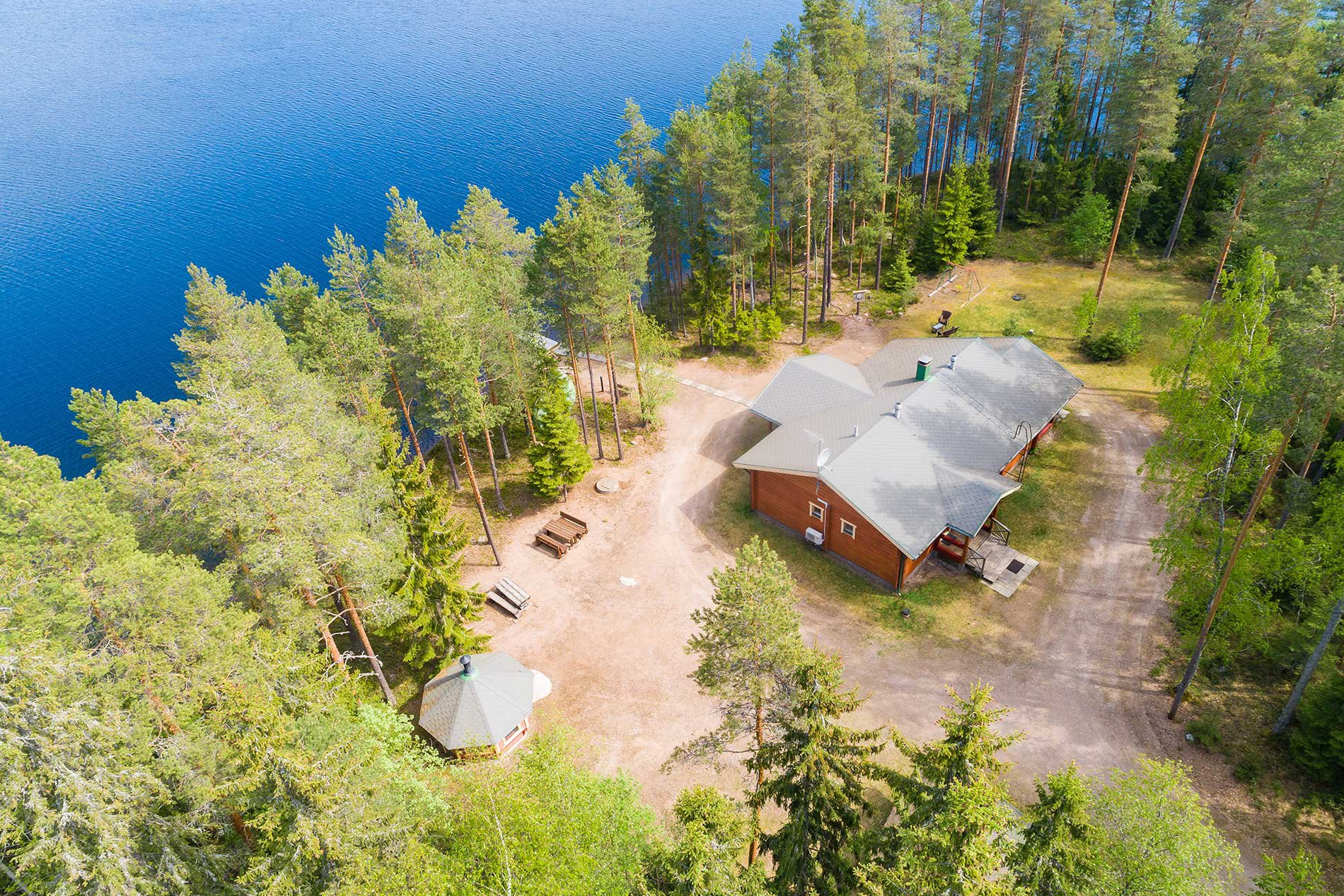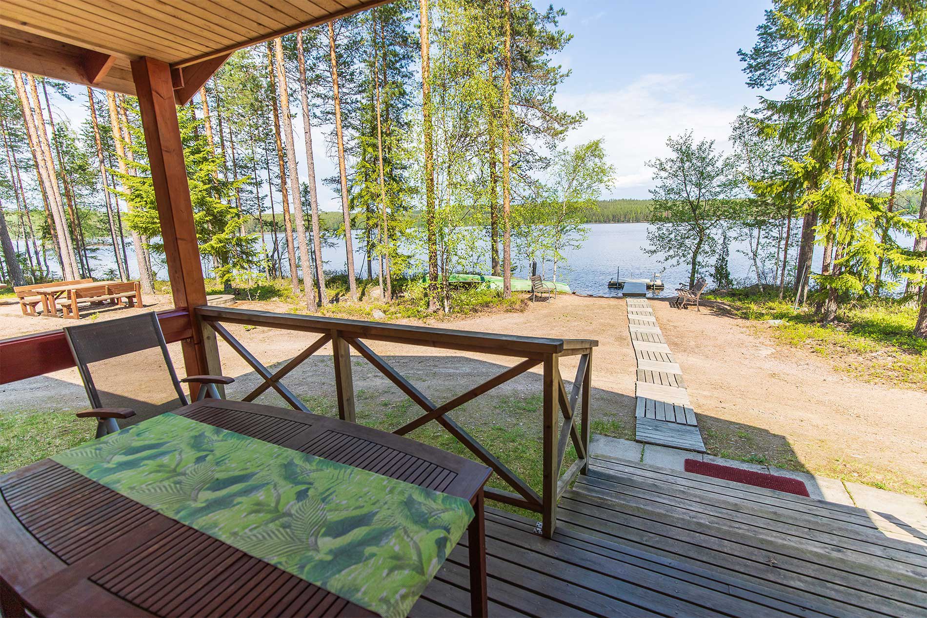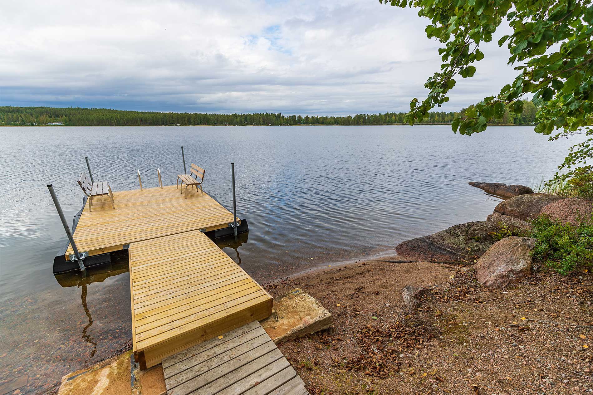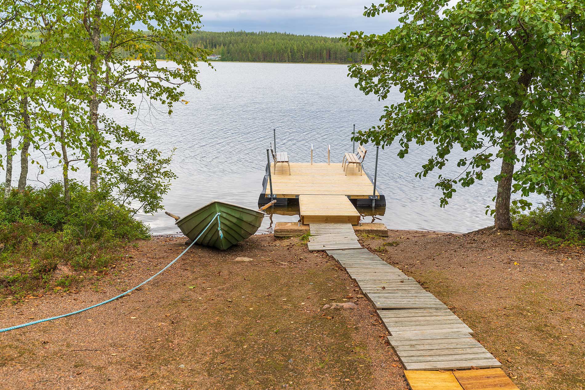 Auf dem Hof befindet sich ein Kota Grill und am Strand ein breiter Bootssteg, auf dem Sie gemütlich Zeit verbringen oder sich sonnen können. Die Gewässer in der Umgebung sind reich an Fisch.