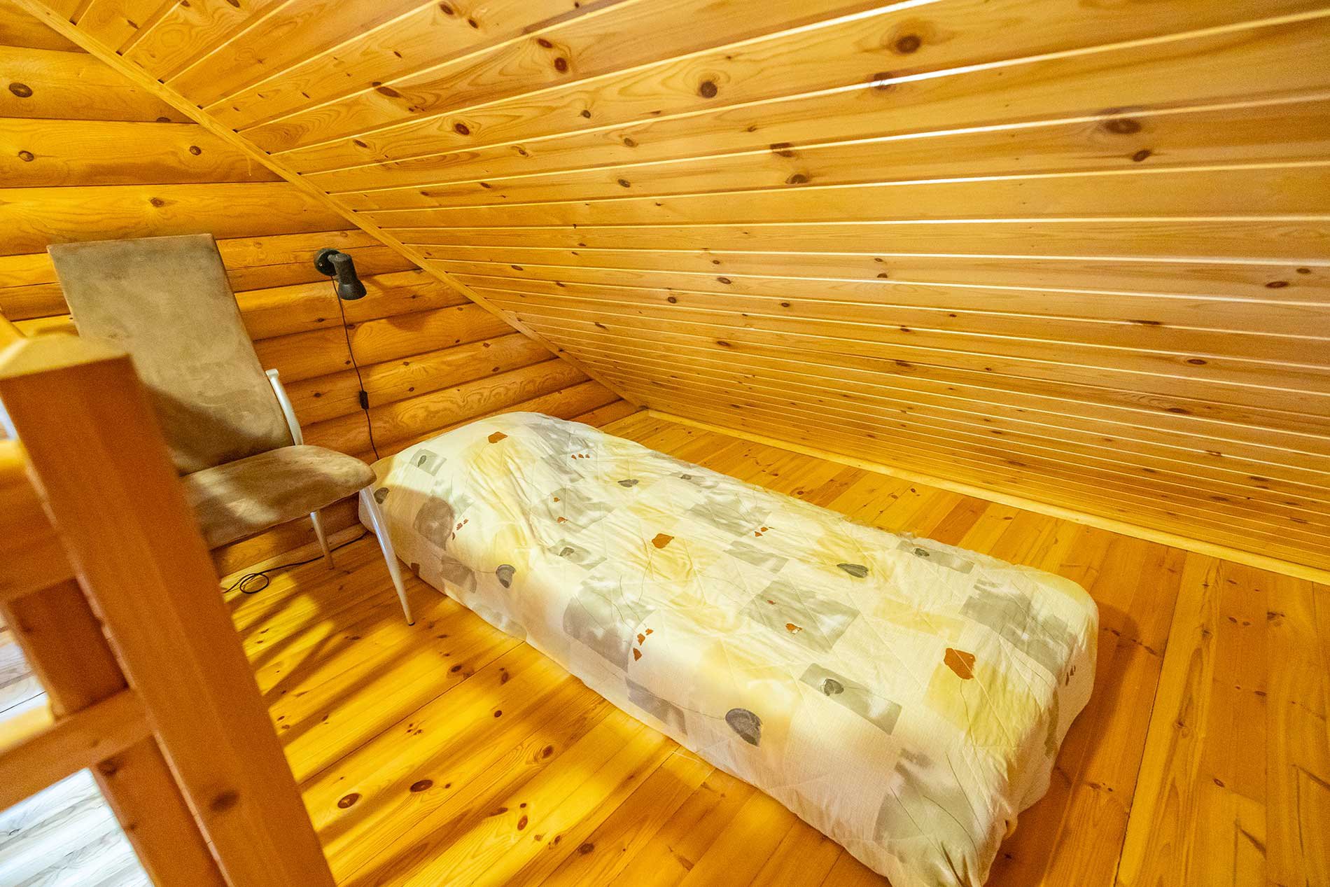 Рядом с коттеджем расположен обогреваемый спальный домик, рассчитанный для 2 человек, который входит в стоимость коттеджа.